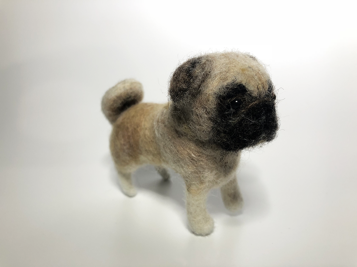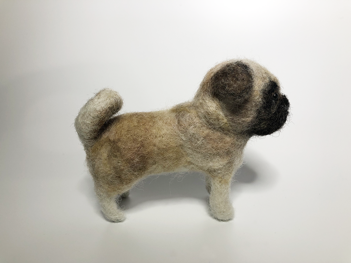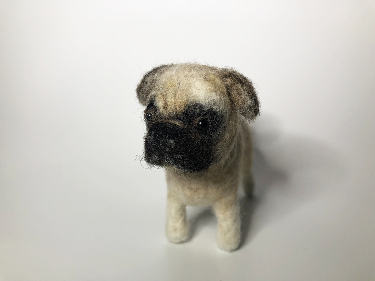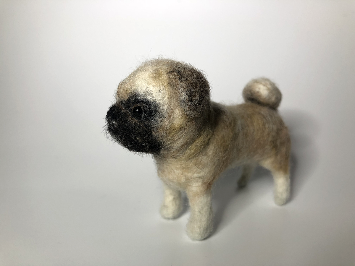 A commissioned project for a person that requested a needle felt replica of a pet who had passed away. The sculpt has a simple armature to allow for some natural poses.